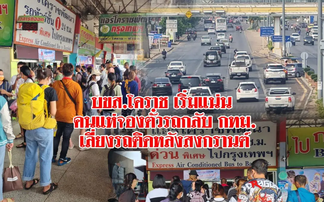บขส.โคราช เริ่มแน่น คนแห่จองตั๋วรถโดยสารเดินทางกลับ กทม.เลี่ยงรถติดหลังสงกรานต์ ขณะที่ถนนมิตรภาพรถโล่งตลอดสาย คาดบ่ายนี้รถเริ่มมาก