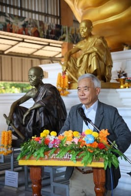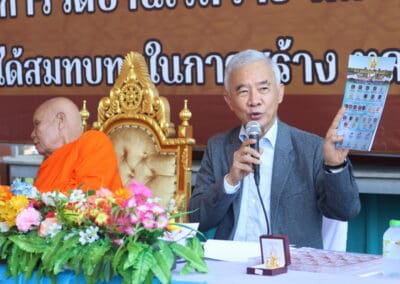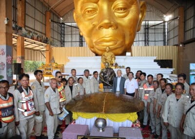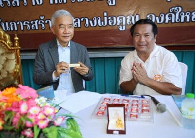 นายสุวัจน์ กล่าว่าการจัดสร้างหลวงพ่อคูณองค์ใหญ่ ได้สร้างมาตั้งแต่ปี 2562 ก็ 5 ปีแล้วตอนนี้ก็สร้างได้ประมาณ 40 ถึง 50% ต้องใช้เงินทุน ประมาณเกือบ 200 ล้านบาท วันนี้ทางวัดบ้านไร่ได้มีการแถลงข่าว เพื่อที่จะจัดสร้างวัตถุมงคล เพื่อให้พี่น้องประชาชนพุทธศาสนิกชนที่อยากที่จะได้ร่วมบุญ ร่วมกุศล หลวงพ่อคูณองค์ใหญ่ ไว้บูชา เป็นงานกุศล เป็นการบอกบุญ ว่าพุทธศาสนิกชนหรือพี่น้องประชาชนต้องการที่จะร่วมทําบุญกับวัดบ้านไร่ ในการสร้างหลวงพ่อคูณองค์ใหญ่ สามารถที่จะมาร่วมบุญด้วยการจองวัตถุมงคลต่างๆ เพื่อความเป็นสิริมงคลหลวงพ่อคูณ ไว้ในใจชีวิตเราก็จะมีความสุข เพราะท่านสอนเราไว้เยอะ สอนว่าอย่าให้เงินเป็นเจ้านาย ให้เราเป็นเจ้านายเงิน อย่าโลภ อย่าประมาท อย่าไปยุ่งเกี่ยวกับยาเสพติด คําสอนท่าน ถ้าเกิดทุกคนมีหลวงพ่อคูณไว้ในใจ ชีวิตก็จะมีความสุข แล้วปลอดภัย
