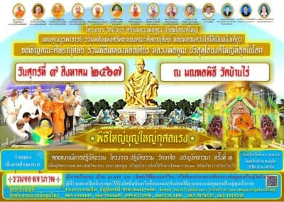 ขอเรียนเชิญศิษยานุศิษย์ พุทธศาสนิกชน และประชาชนทั่วไปร่วมบุญใหญ่กับวัดบ้านไร่ ในการจัดสร้างหลวงพ่อคูณองค์ใหญ่ โดยการบูชาทองแท่ง เพื่อหล่อหลวงพ่อคูณองค์ใหญ่ แท่งละ 199 บาท โครงการทอดผ้าป่าลอยฟ้า กองละ 999 บาท โครงการหลวงพ่อคูณมีไว้ทุกบ้าน หรือจะร่วมสมทบทุนได้ที่เพจวัดบ้านไร่ สแกนคิวอาร์โค้ช หรือสามารถมาร่วมสมทบทุน โครงการวัดบ้านไร่ สร้างหลวงพ่อคูณปริสุทโธ องค์ใหญ่ วัดบ้านไร่ อ.ด่านขุนทด จ.นครราชสีมา