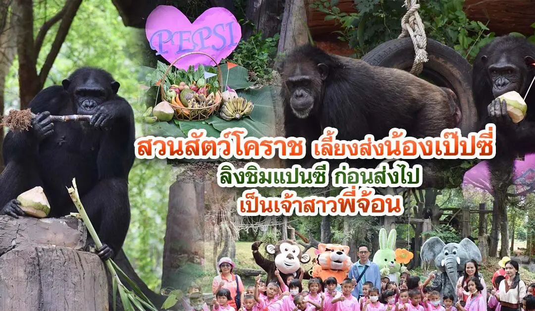 นายธนชน เคนสิงห์ ผู้อำนวยการสวนสัตว์นครราชสีมา เปิดเผยว่า สวนสัตว์นครราชสีมา เตรียมความพร้อมส่งตัวเจ้าสาว น้องเป๊ปซี่ ลิงชิมแปนซี สุดสวย ให้กับพี่จ้อน ลิงชิมแปนซี ดาวเด่นสวนสัตว์สงขลา เนื่องในโอกาส ครบรอบ 25 ปี สวนสัตว์สงขลา ในเดือนตุลาคม 2566 นี้ ซึ่งมีกำหนดส่งตัว น้องเป๊ปซี่ ในวันที่ 1 กันยายน 2566 สวนสัตว์นครราชสีมา จึงจัดกิจกรรมเลี้ยงส่งให้กับว่าที่เจ้าสาว ก่อนส่งตัวน้องเป๊ปซี่ ไปสวนสัตว์สงขลา โดยได้จัดเลี้ยงผลไม้นานาชนิดที่ลิงชิมแปนชีชื่นชอบ อีกทั้งภายในบรรยากาศกิจกรรมการเลี้ยงส่งเจ้าสาว ยังมีบรรดาเหล่าครอบครัวลิงชิมแปน พี่ๆมาสคอต และ น้องๆนักเรียน ได้มาร่วมแสดงความยินดีกับ น้องเป๊ปซี่ ว่าที่เจ้าสาวสุดสวยด้วย