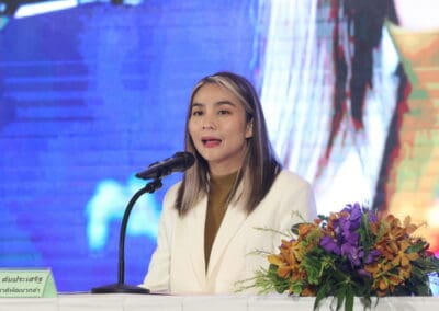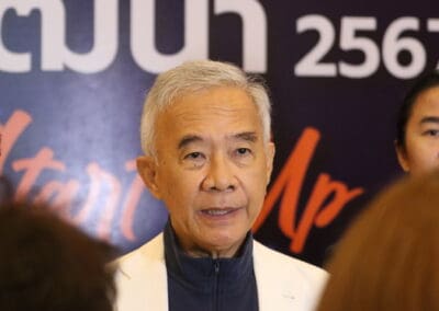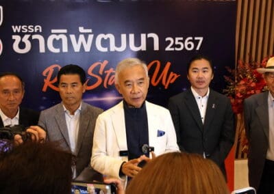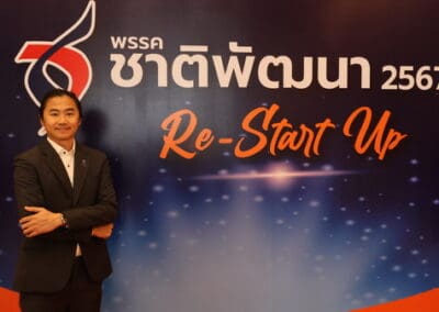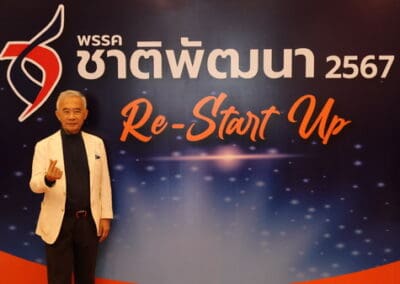 ในส่วนโลโก้ อักษร ชื่อ.ช้างไขว้ เหมือนเดิมมีปรับองศานิดหน่อย วันนี้ขึ้นคำว่า ”พรรคชาติพัฒนา 2567 Re-Start-Up” เพื่อแสดงผลงานให้พี่น้องประชาชนฟังว่า สส.พรรคชาติพัฒนาทุกคนมีบทบาทในสภาหมด อย่าง คุณหมอวรรณรัตน์ ได้ติดตามโครงการต่างๆ ไม่ว่าจะเป็นโครงการน้ำประปา โครงการมอเตอร์เวย์ หรือการย้ายเรือนจํา จังหวัดนครราชสีมา การแก้ไขปัญหาเรื่องบุหรี่ไฟฟ้า คุณวุฒิพงศ์ ชำนาญเรื่องสิ่งแวดล้อม คุณวัชรพล ผู้ช่วยรัฐมนตรีกระทรวงสาธารณสุข ก็ทํางานในเรื่องการดูแลอสม. คุณประสาท เลขาพรรค ก็ดูแลในเรื่องของสินค้า คุณเทวัญ หัวหน้าพรรคก็ช่วยงานท่านนายกรัฐมนตรี