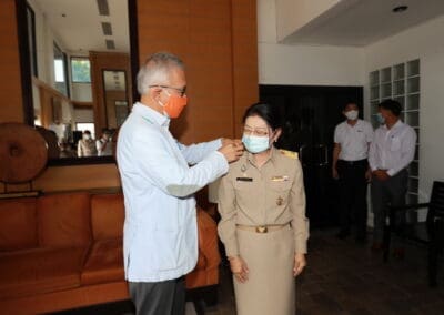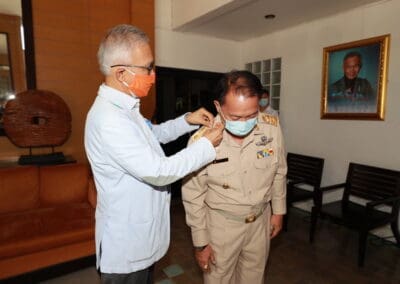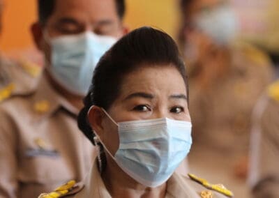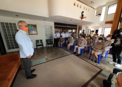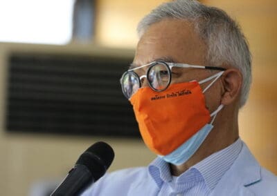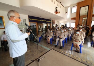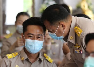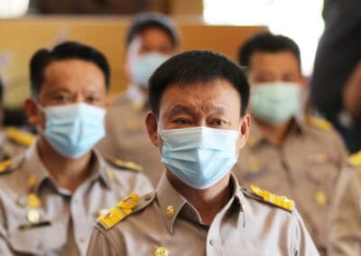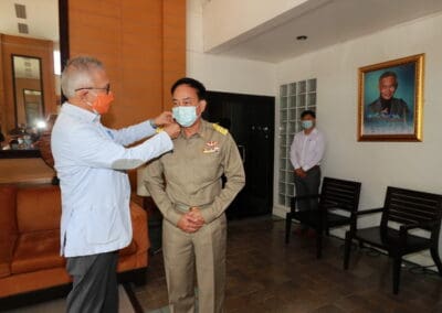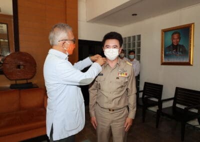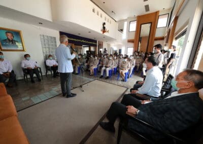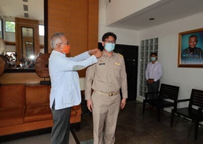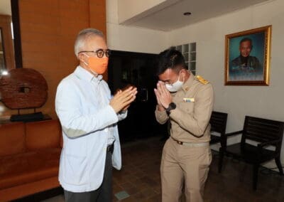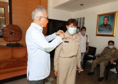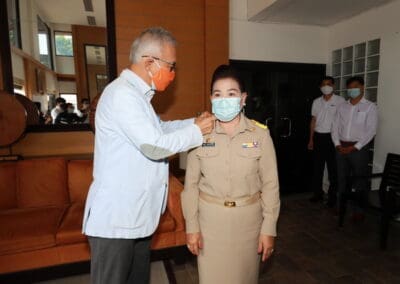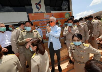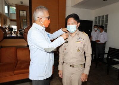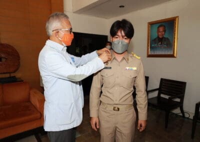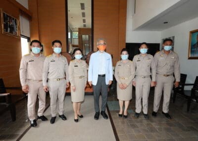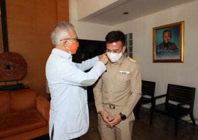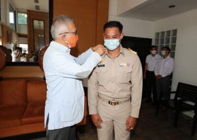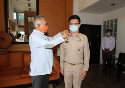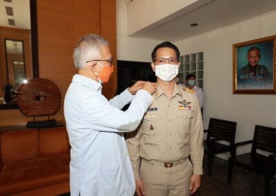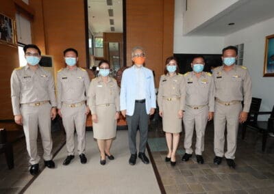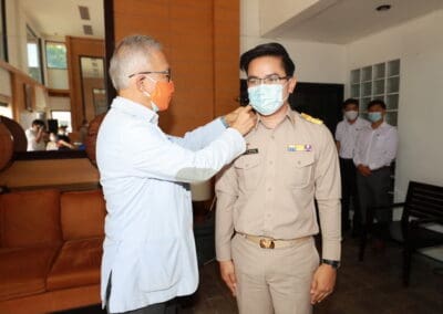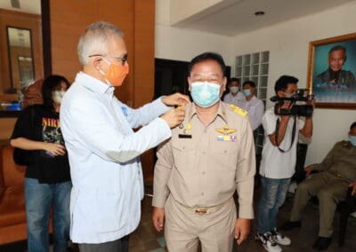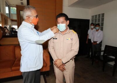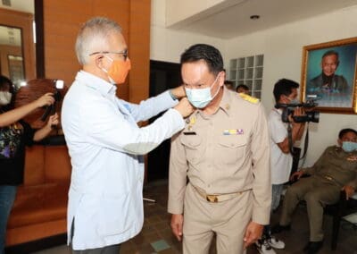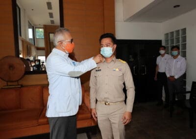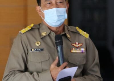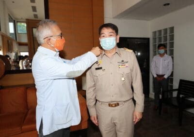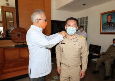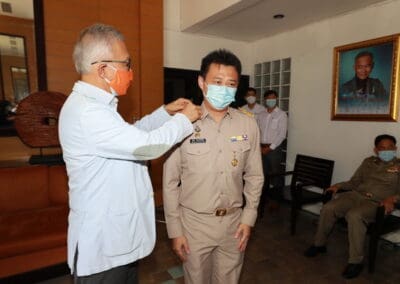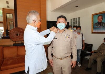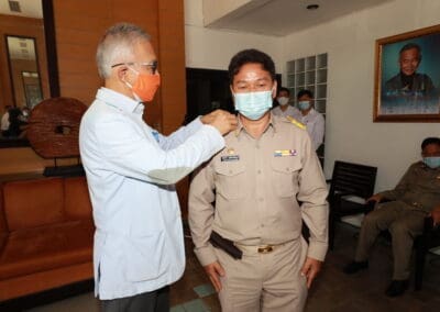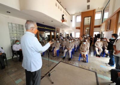 เรื่องแรกคือ การช่วยเหลือแก้ปัญหาโรคระบาดไวรัสโควิด-19 ซึ่งถือว่าเป็นเรื่องเร่งด่วน เราจะต้องช่วยประสานหน่วยงานต่างๆ เพื่อขอวัคซีนมาฉีดให้ประชาชนในพื้นที่ให้ได้มากที่สุด เพราะวัคซีนถือว่าเป็นคำตอบสุดท้ายของการแก้ปัญหาการระบาดของไวรัสชนิดนี้ และที่สำคัญที่สุด ต้องลงไปช่วยพี่น้องประชาชนเรื่องโควิด เหมือนอย่างที่ศูนย์ตนโคราชรักจริงไม่ทิ้งกัน ตอนนี้ทุกคนลงพื้นที่กันทุกวัน ไปช่วยการให้ความรู้ความเข้าใจ เรื่องการลงทะเบียน ช่วยกันในเรื่องการประสานต่างๆ และการไปมอบอุปกรณ์ทางการแพทย์ หน้ากากอนามัยและต่างๆ เรื่องที่ 2 หลังจากประชาชนได้รับการฉีดวัคซีนไปส่วนใหญ่แล้ว ซึ่งคาดว่าประมาณปลายปีนี้ ก็จะเริ่มมีภูมิคุ้มกันหมู่ ดังนั้น ขอให้น้องๆ ทั้งนายกเทศมนตรี สท. และ ส.อบจ. ได้ร่วมกันฟื้นฟูเศรษฐกิจโคราชให้ได้เร็วที่สุด คือ ต้องมีกิจกรรมทางด้านเศรษฐกิจ ช่วยคนตกงาน ช่วยผู้ประกอบการที่ต้องหยุดงาน กิจการทางด้านการท่องเที่ยว ส่งเสริมการฟื้นฟู ให้คนมาลงทุน การท่องเที่ยวต่างๆ