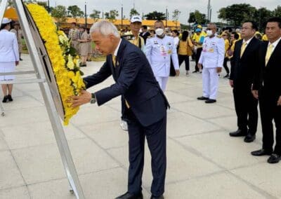 ทั้งนี้ มีตัวแทนพรรคการเมืองต่างๆ หน่วยงานภาครัฐ เหล่าทัพ ภาคเอกชน ประชาชน นักเรียน นิสิต นักศึกษา องค์กรต่างๆ ร่วมถวายพวงมาลา เพื่อน้อมสำนึกในพระมหากรุณาธิคุณ