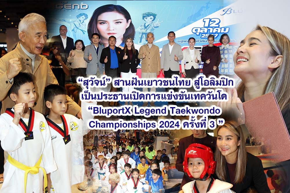 วันเสาร์ 12 ตุลาคม 2567 เวลา 12.00 น.นายสุวัจน์ ลิปตพัลลภ อดีตรองนายกรัฐมนตรี เป็นประธานพิธีเปิดการแข่งขันเทควันโด รายการ “BluportX Legend Taekwondo Championships 2024 ครั้งที่ 3 ” โดยมีคุณอติชาติ ชัยศรี รองนายกเทศมนตรีเทศบาลเมืองหัวหิน คุณพลกฤต พวงวลัยสิน นายอำเภอหัวหิน คุณอุษา พวงวลัยสิน นายกกิ่งกาชาดอำเภอหัวหิน ดร.พรระวี สีเหลืองสวัสดิ์ ประธานสมาพันธ์ SME ประจวบคีรีขันธ์ คุณโชคชัย วงศืจักรภัชร์ กรรมการผู้จัดการ บลูพอร์ต หัวหิน คุณเยาวภา บุรพลชัย ประธานการจัดการแข่งขัน คณะผู้ตัดสิน นักกีฬาเทควันโดจากทั่วประเทศที่เข้าร่วมการแข่งขัน จำนวน 34 ทีม นักกีฬาเข้าร่วมแข่งขัน 517 คน และผู้ชมการแข่งขันประมาณ 1,000 คน ณ BluHall ศูนย์การค้า บลูพอร์ต หัวหิน