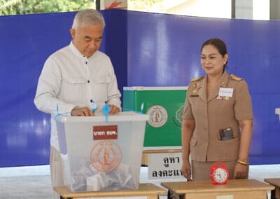 วันที่ 1 กุมภาพันธุ์ 2568 เวลา 9.30 น.นายสุวัจน์ ลิปตพัลลภ อดีตรองนายกรัฐมนตรี ประธานพรรคชาติพัฒนา ได้เดินทางมาเลือกตั้งนายกองค์การบริหารส่วนจังหวัดนครราชสีมาและสมาชิกสภาองค์การบริหารส่วนจังหวัดนครราชสีมา โดยตรวจรายชื่อผู้มีสิทธิ์พร้อมแสดงบัตรประชาชนที่หน่วยเลือกตั้งที่ 25 โดยมีชื่อที่อยู่บ้านเลขที่ 2222/2 ลำดับที่ 244 ก่อนรับบัตรลงคะแนนจากเจ้าหน้าที่ประจำหน่วยเลือกตั้งเข้าคูหากากหมายเลขทั้งบัตรนายก อบจ. และ ส.อบจ. โดยใช้เวลา 10 นาที
