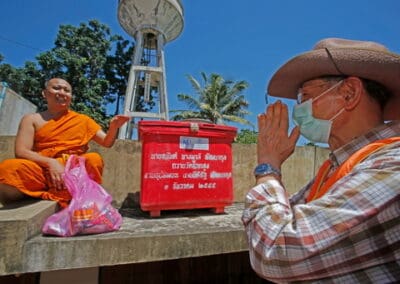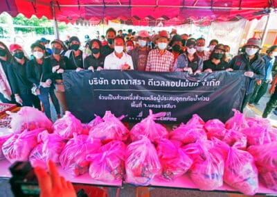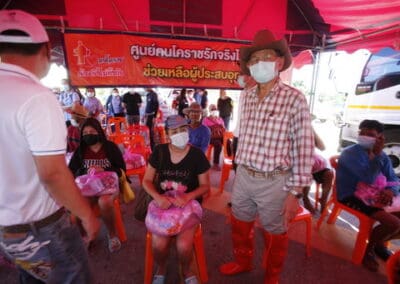 นายแพทย์วรรณรัตน์ กล่าวว่าศูนย์ฅนโคราชรักจริงไม่ทิ้งกัน โดยความห่วงใยของท่านสุวัจน์ ลิปตพัลลภ ที่ปรึกษาศูนย์ฯ ได้ให้ทีมงานนำถุงน้ำใจมาช่วยพี่น้องประชาชนที่ได้รับผลกระทบจากน้ำท่วม จำนวน 250 ถุง ประกอบด้วย ข้าวสาร อาหารแห้ง มะหมี่สำเร็จรูป ปลากระป๋อง ไข่ไก่ และน้ำดื่ม