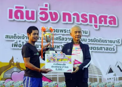 รางวัลพระราชทานสมเด็จพระเจ้าน้องนางเธอเจ้าฟ้าจุฬาภรณวลัยลักษณ์ อัครราชกุมารี กรมพระศรีสวางควัฒน วรขัตติยราชนารี ที่ทรงพระกรุณาโปรดเกล้าฯ พระราชทานถ้วยรางวัล การจัดการวิ่ง การเดินการกุศลในครั้งนี้ ถือว่ามีวัตถุประสงค์ที่สําคัญ คือ การสร้างความรัก ความสามัคคีในหมู่คณะชาวเกษตร ซึ่งวันนี้เรามีถึงรุ่นที่ 83 ถือว่ามีอายุเก่าแก่มาก ศิษย์เก่านับแสนคนที่ได้ออกไปรับใช้ประเทศชาติและสร้างชื่อเสียงให้กับมหาวิทยาลัย