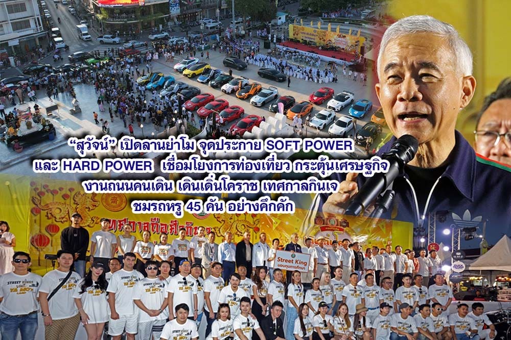 สุวัจน์ เปิดลานย่าโม จุดประกาย SOFT POWER และ HARD POWER เชื่อมโยงการท่องเที่ยว กระตุ้นเศรษฐกิจ งานถนนคนเดิน เดินเดิ่นโคราช เทศกาลกินเจ ชมรถหรู 45 คัน อย่างคึกคัก