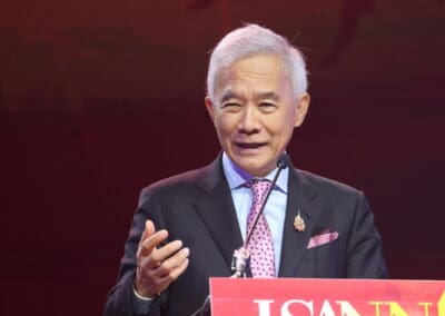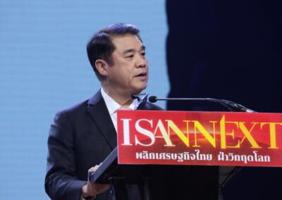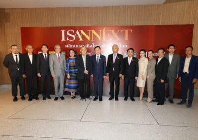 ดังนั้น วันนี้นําไปสู่การสัมมนาว่าภาคอีสานจะมีพื้นฐานอะไรบ้าง ที่จะมาต่อยอดทางเศรษฐกิจ ที่จะมาเป็นแพลตฟอร์มใหม่ ให้กับระบบเศรษฐกิจในประเทศไทย เราใช้คําว่า ISANNEXT คือ พลิกวิกฤตเศรษฐกิจของไทย ฝ่าวิกฤติโลก โดยมีจุดแข็ง ดังนี้