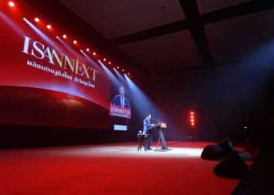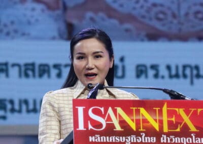 และสุดท้ายได้รับเกียรติจากท่านอดีตนายกรัฐมนตรี พณฯ ดร.ทักษิณ ชินวัตร ที่ถือว่าเป็นผู้ที่มีประสบการณ์เรื่องเศรษฐกิจจะมาพูดเรื่องวิสัยทัศน์ในการที่จะพัฒนาภาคอีสาน ในหัวข้อว่า“โอกาสของอีสาน อนาคตของประเทศไทย”