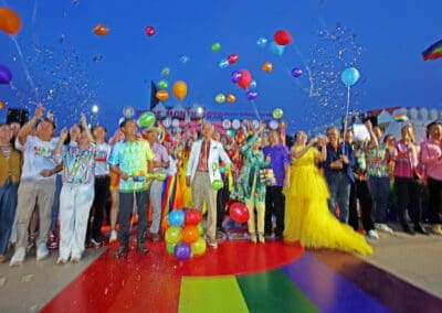 ทั้งนี้ บรรยากาศภายในงานมีการแต่งกายสวมใส่ชุดสวยงามหลากสีสัน ส่วนใหญ่จัดเป็นโทนสีรุ้ง และมีการเดินขบวนพาเหรดของกลุ่ม LGBTQIA+ ในจังหวัดนครราชสีมา กลุ่มหลากหลายทางเพศ มีการถือป้าย โลโก้พรรคการเมือง และป้ายเขียนว่า สมรสเท่าเทียม การขับเคลื่อนเพื่อทุกคน เดินพาเหรดไปรอบตัวเมืองนครราชสีมา โดยได้รับความสนใจจากพี่น้องประชาชน รวมทั้งนักท่องเที่ยวชาวต่างชาติกันอย่างคึกคัก