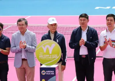 อดีตรองนายกรัฐมนตรี นายกกิตติมศักดิ์สมาคมกีฬาลอนเทนนิสแห่งประเทศไทย ในพระบรมราชูปถัมภ์ เป็นประธานเปิดการแข่งขันเทนนิส Cal-Comp & CCAU Industry 4.0 Open ITF World Tennis Tour 2023 (แคล-คอมพ์ แอนด์ ซีซีเอยู อินดัสตรี 4.0 โอเพ่น ไอทีเอฟ เวิลด์ เทนนิส ทัวร์ 2023) พร้อมด้วย นายกิตติพงศ์ สุขภาคกุล รองผู้ว่าราชการจังหวัดประจวบคีรีขันธ์ และนายธนะศักดิ์ จรรยาพูน กรรมการบริษัท บริษัท แคล-คอมพ์ อีเล็คโทรนิคส์ (ประเทศไทย) จำกัด มหาชน ณ สนามเทนนิส อารีน่า หัวหิน