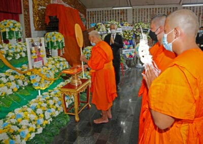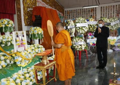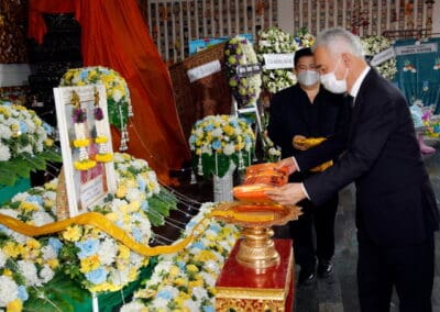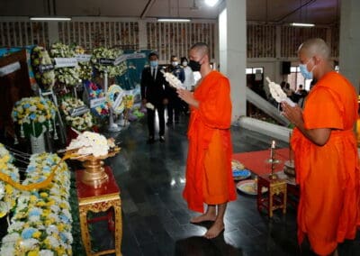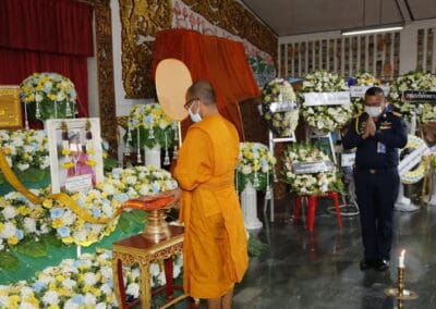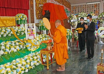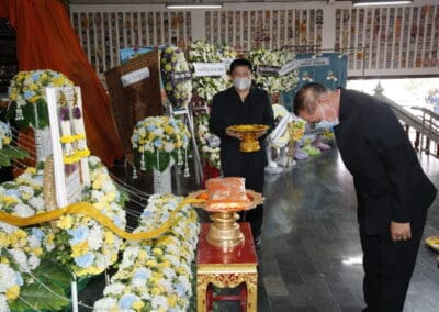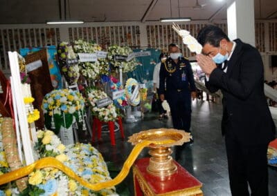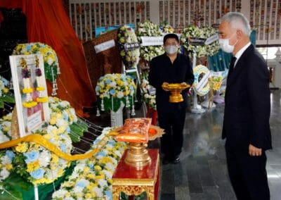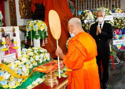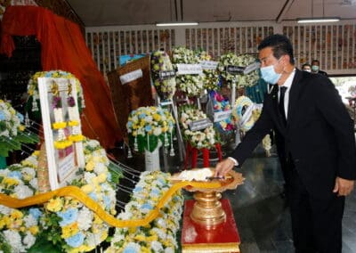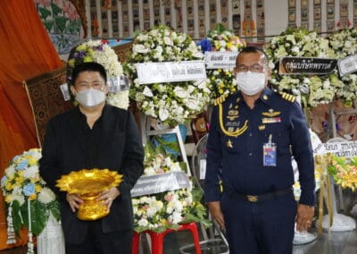 โดยมี นายเทวัญ ลิปตพัลลภ อดีตรัฐมนตรีประจำสำนักนายกรัฐมนตรี หัวหน้าพรรคชาติพัฒนา , พลเอก ณพล บุญทับ , ดร.ภัทรพล บัญชาจารุรัตน์ นายกเทศมนตรีตำบลกุดจิก อำเภอสูงเนิน จังหวัดนครราชสีมา , เทศบาลตำบลไทรน้อย จ.นนทบุรี และข้าราชการท้องถิ่น ญาติพี่น้อง ร่วมเป็นเกียรติแก่ผู้วายชนม์
