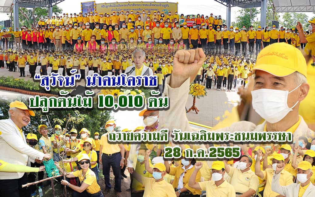นายสุวัจน์ กล่าวว่า เนื่องในวโรกาสวันเฉลิมพระชนมพรรษา พระบาทสมเด็จพระปรเมนทรรามาธิบดีศรีสินทรมหาวชิราลงกรณ พระวชิรเกล้าเจ้าอยู่หัว ถือว่าเป็นวันมหามงคลอยากให้พสกนิกรชาวไทยทุกท่านได้ร่วมกันทำความดี ถวายความจงรักภักดี อย่างเช่นที่ จังหวัดนครราชสีมา ในเขตนครเมืองนครราชสีมา ได้ร่วมแรงร่วมใจ กันปลูกต้นไม้เฉลิมพระเกียรติ จำนวน 10,010 ต้น เพื่อถวายความจงรักภักดี ซึ่งได้ปลูกต้นไม้รวงผึ้ง ซึ่งเป็นต้นไม้ประจำในหลวงรัชกาลที่ 10 และทางเทศบาลฯ ยังมีโครงการขยายการปลูกต้นไม้ เพื่อสร้างเขตเทศบาลให้มีความเขียวชอุ่ม ซึ่งมีประชากรจำนวนประมาณ 130,000 คน ก็ตั้งใจเชิญชวนพี่น้องชาวเทศบาลฯ ทุกท่านปลูกคนละหนึ่งต้น โดยถือเอาวันมหามงคลเป็นจุดเริ่มต้นในการปลูกต้นไม้ให้ครบจำนวนของประชากร 130,000 คน ในเทศบาลฯ