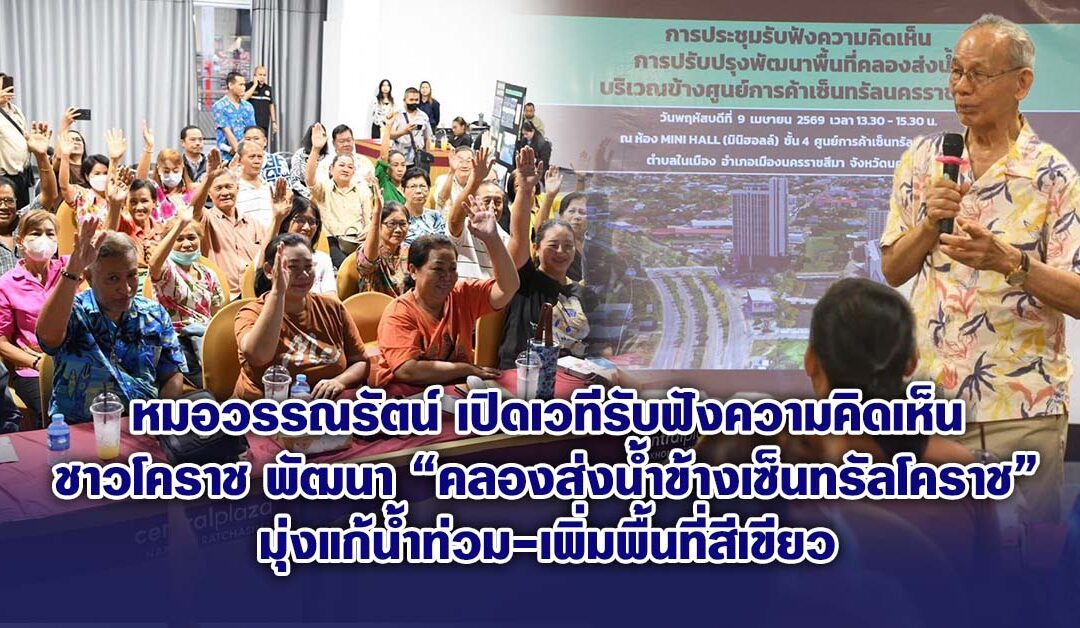 ข่าวประจำวันหมอวรรณรัตน์ เปิดเวทีรับฟังความคิดเห็นชาวโคราช พัฒนา “คลองส่งน้ำข้างเซ็นทรัลโคราช” มุ่งแก้น้ำท่วม-เพิ่มพื้นที่สีเขียว