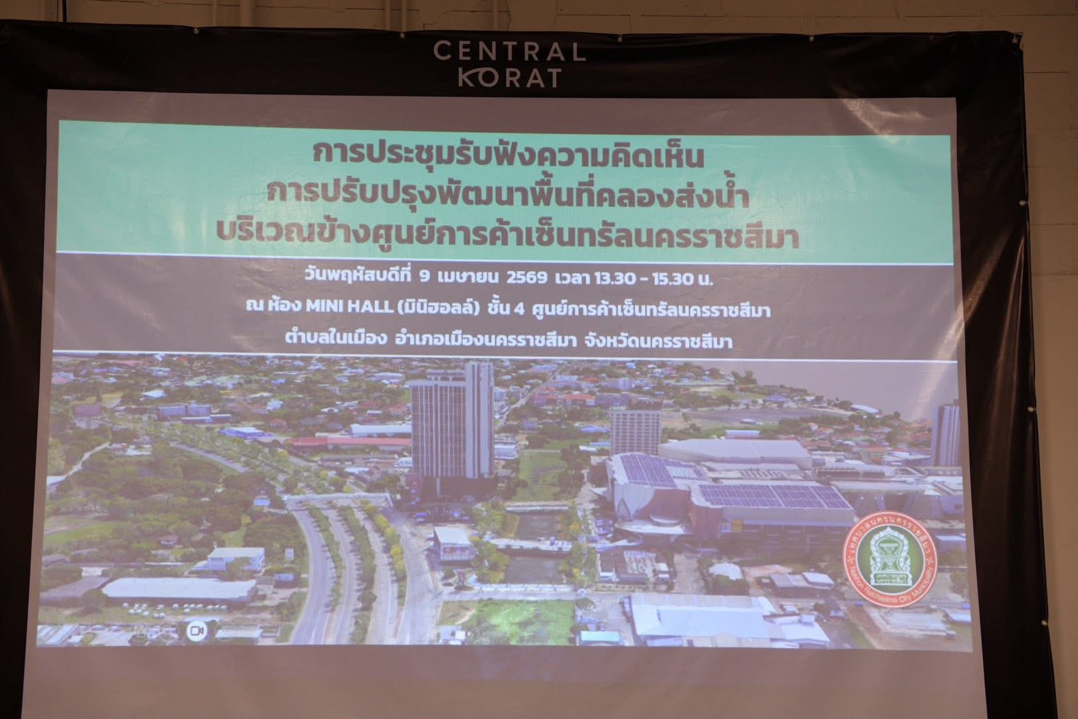 นครราชสีมา – วันที่ 9 เมษายน 2569 เวลา 13.30 น. เทศบาลนครนครราชสีมา จัดประชุมรับฟังความคิดเห็นของประชาชนต่อโครงการปรับปรุงและพัฒนาพื้นที่คลองส่งน้ำ บริเวณข้างศูนย์การค้าเซ็นทรัลนครราชสีมา ณ ห้อง MINI HALL ชั้น 4 ศูนย์การค้าเซ็นทรัลนครราชสีมา