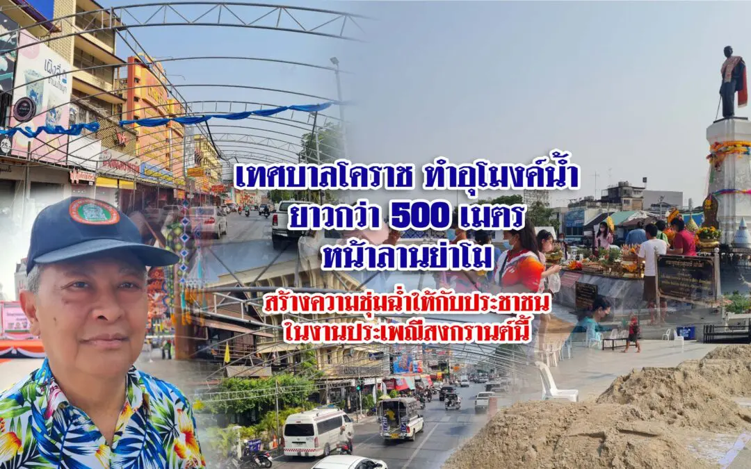 เทศบาลโคราชทำอุโมงค์น้ำยาวกว่า 500 เมตร หน้าลานย่าโม สร้างความชุ่มฉ่ำให้กับประชาชนในงานประเพณีสงกรานต์นี้