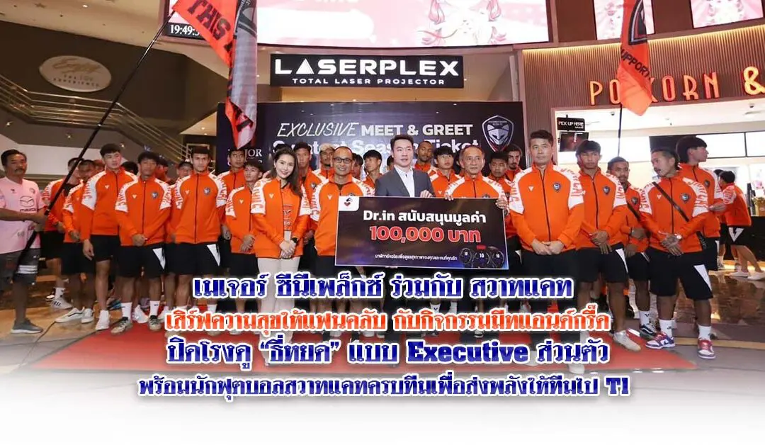 เมเจอร์ ซีนีเพล็กซ์ ร่วมกับ สวาทแคท เสิร์ฟความสุขให้แฟนคลับ กับกิจกรรมมีทแอนด์กรี๊ดปิดโรงดู “ธี่หยด” แบบ Executive ส่วนตัว      พร้อมนักฟุตบอลสวาทแคทครบทีม เพื่อส่งพลังให้ทีมไป T1