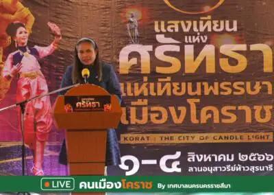 แห่เทียนพรรษาโคราช “แสงเทียนแห่งศรัทธา แห่เทียนพรรษาเมืองโคราช” Korat : The City of Candle Light ประกวดต้นเทียนพรรษา ชิงถ้วยพระราชทานสมเด็จพระเทพฯ ประกวดขบวนแห่ต้นเทียนที่วิจิตรตระการตาแสดงความเป็นอัตลักษณ์ รวมถึงสีสันขบวนแห่ที่หลากหลาย